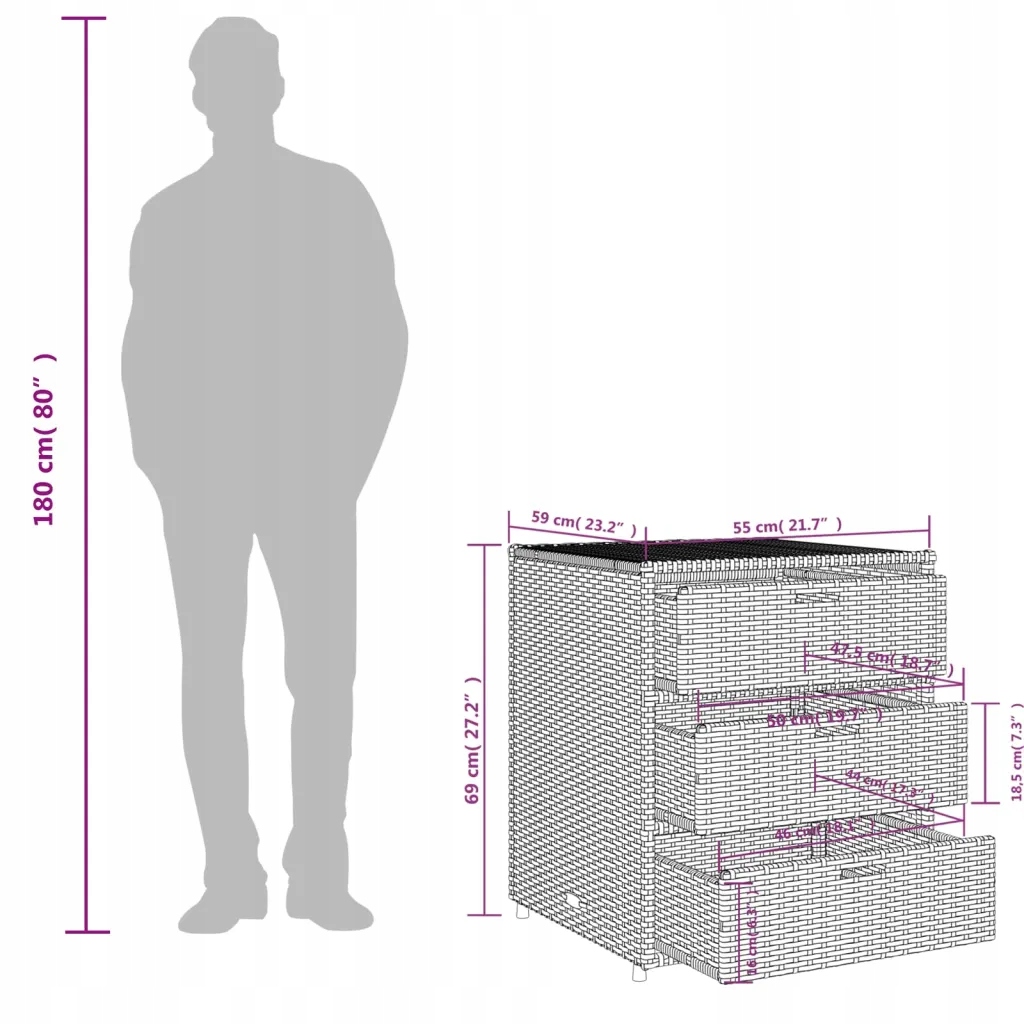 Садовый шкаф Rattan 3 ящики черные 55x59x69 см h1>