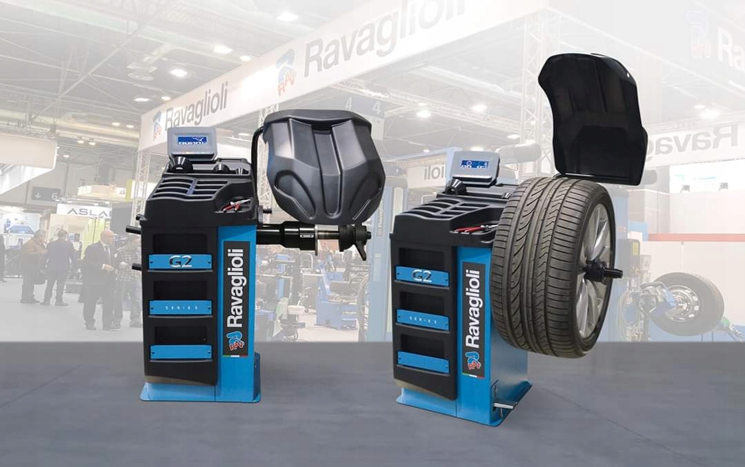 Бансировочный станок Ravaglioli G2.121RFM — новая, компактная модель тихоходного устройства для балансировки колес легковых автомобилей, автофургонов и мотоциклов (с дополнительным навесным оборудованием)