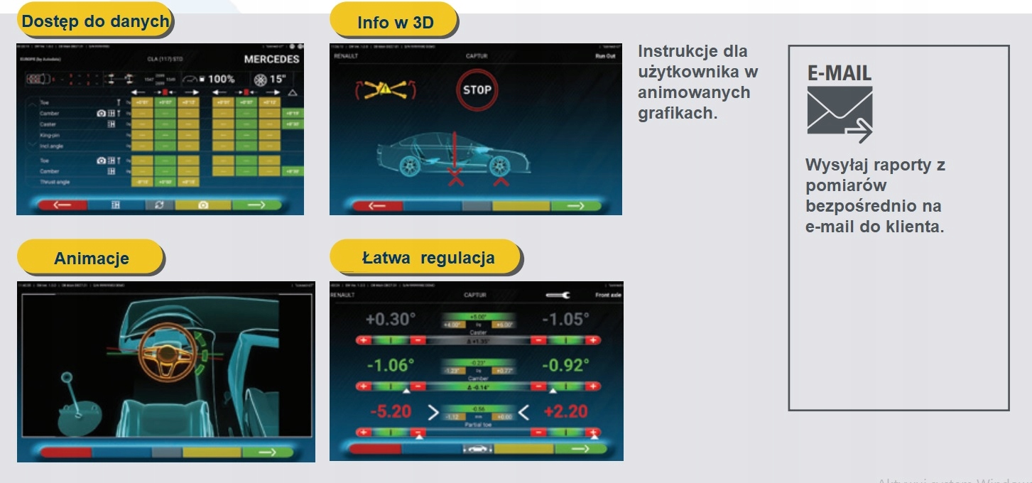 Революционное и инновационное устройство для регулировки сход-развала теперь доступно!! Новая концепция от итальянского производителя Ravaglioli для регулировки сход-развала с 8 датчиками. Полностью без ПК, его можно использовать в среде Wi-Fi с планшетом. Компактная, технологичная альтернатива существующим на рынке решениям. Нет шкафа с управляющим компьютером. Полная модернизация измерительной головки с подшипниками для быстрой компенсации и одним энкодером (решение от самых высоких моделей) Инновационная концепция хранения измерительных головок и зажимов на специальных панелях, благодаря которой мы экономим место.