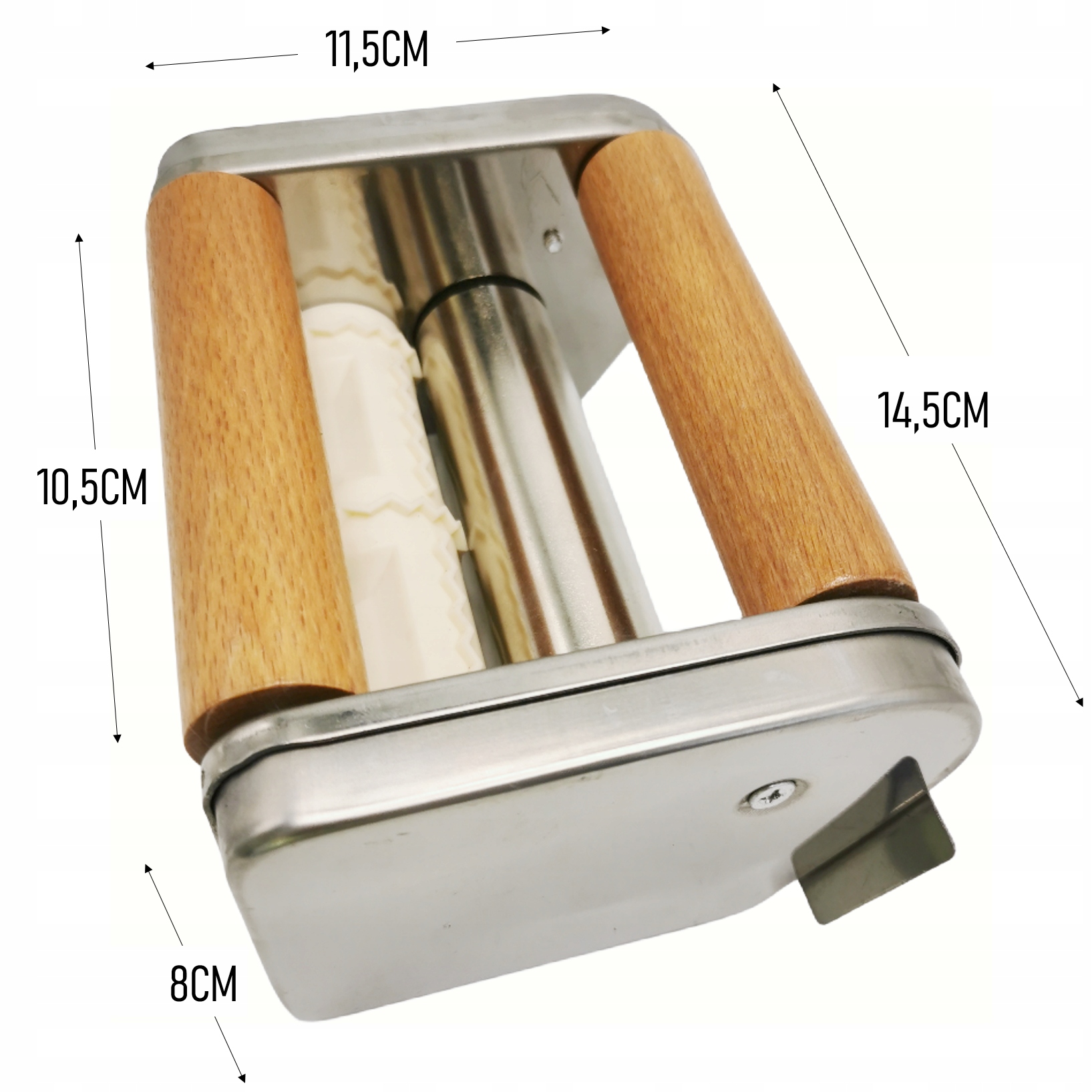 С другой стороны пельмени выйдут сами. Валик по периметру специально перфорирован в форме пельменей для равиоли, благодаря чему выпуклые элементы валика позволяют нарезать тесто нужной формы.