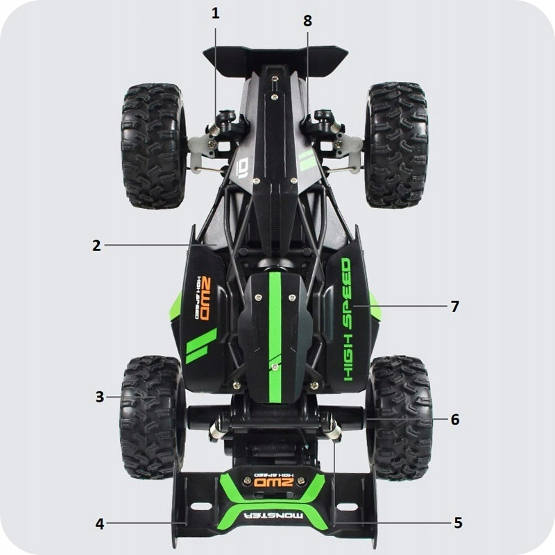 Модель RS-SPORT отличается очень высоким качеством изготовления, высокой устойчивостью к повреждениям и очень точной и продвинутой подвеской и приводом. В сочетании со спортивными черно-зеленой расцветкой мчится со скоростью до 20 км/ч выглядит по-настоящему. хищнические.