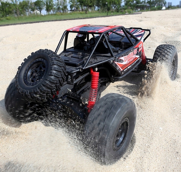 Большие колеса, специальная подвеска и высокое шасси позволяют автомобилю подниматься под углом до 45 градусов на неровной местности. Он успешно преодолевает крутые подъемы и спуски, прыгает и справляется со многими препятствиями, доставляя большое удовольствие и развлечение как детям, так и взрослым.