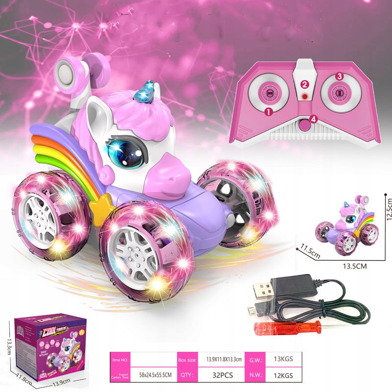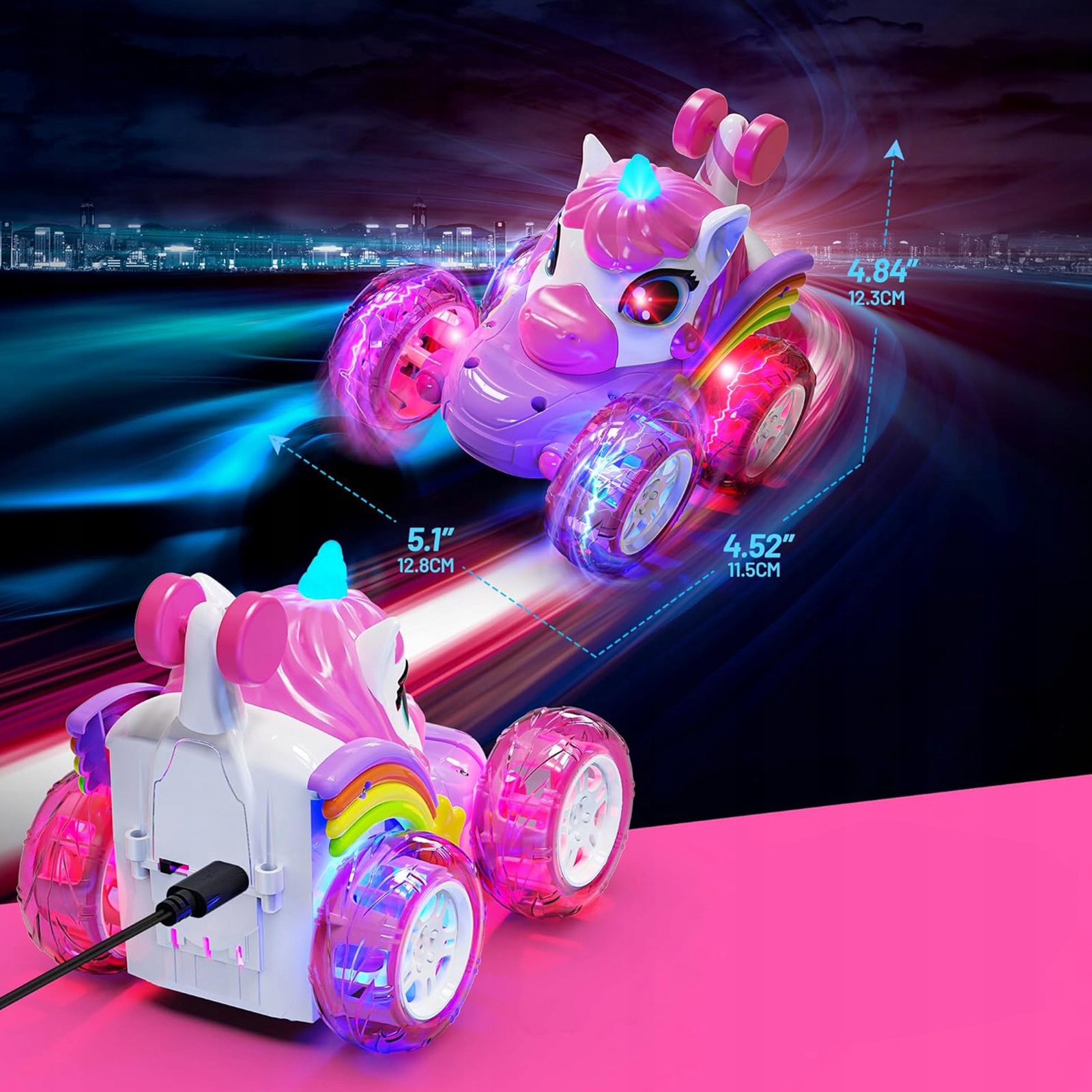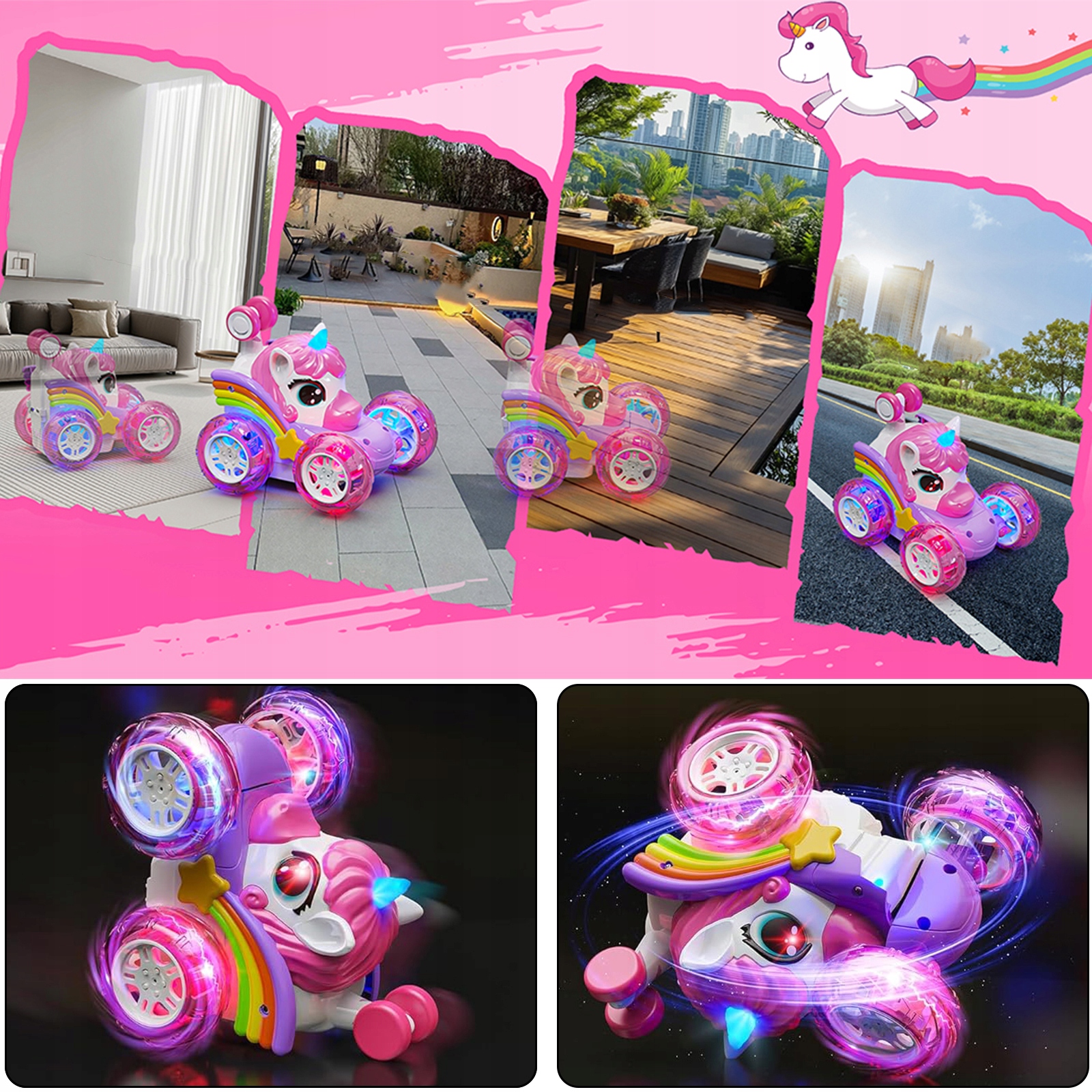 - ✅Машинка-каскадер в форме единорога не только вращается, но и с легкостью выполняет трюки на высокой скорости. Чувствительное управление делает его идеальной игрушкой как для игр в помещении, так и на улице.