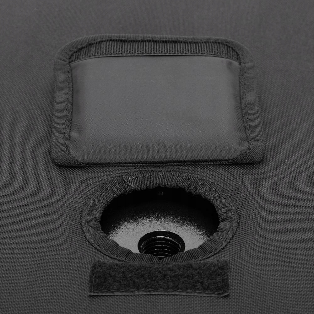Толстый защитный чехол для сабвуфера RCF TT 808. Изготовлен из плотного полиэстера, что делает его устойчивым к погодным условиям. Оснащен подкладкой из поролона, застежками-молниями и липучками. Передняя часть чехла легко открывается и закрывается с помощью липучки с одной стороны. Дополнительно в чехле имеются отверстия для ручек, задняя панель с разъемами и гнездо для подседельной колонки.