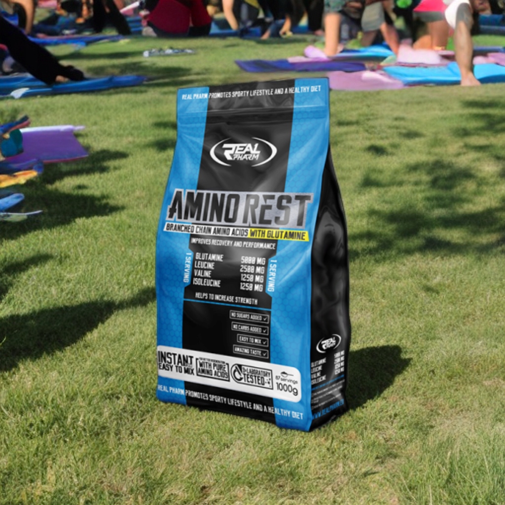 - Real Pharm Amino Rest — высококачественный диетический продукт добавка в виде порошка.