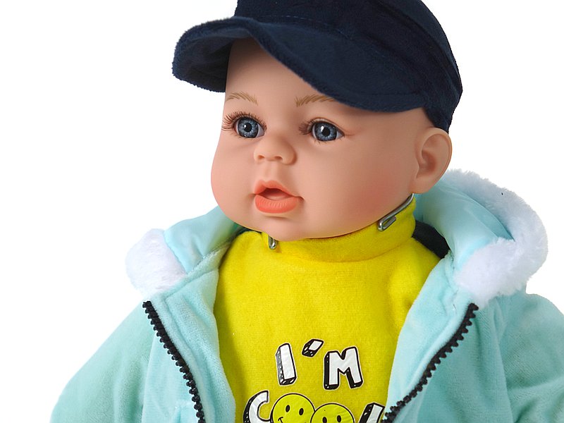 РЕАЛІСТИЧНА ЛЯЛЬКА В БЛАКИТНОМУ ОДЯЖІ РОЗМОВЛЯЄ ТА СПІВАЄ