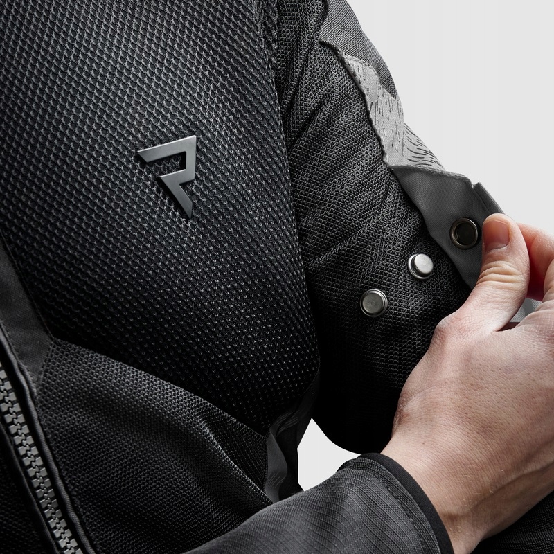 - Куртка имеет систему вентиляции на основе 3D -матричной сетки и стальных сетчатых материалов. Объединяя оба материала, куртка идеально подходит для высоких температур. Это убирает тепло и влагу от тела, а воздух может течь между слоями. Благодаря этим свойствам он широко используется в производстве мотоциклетной одежды, предоставляя мотоциклисты комфорт и защиту. Благодаря используемой корректировке, он обеспечивает отличное соответствие. Новая коллекция Rebelhorn