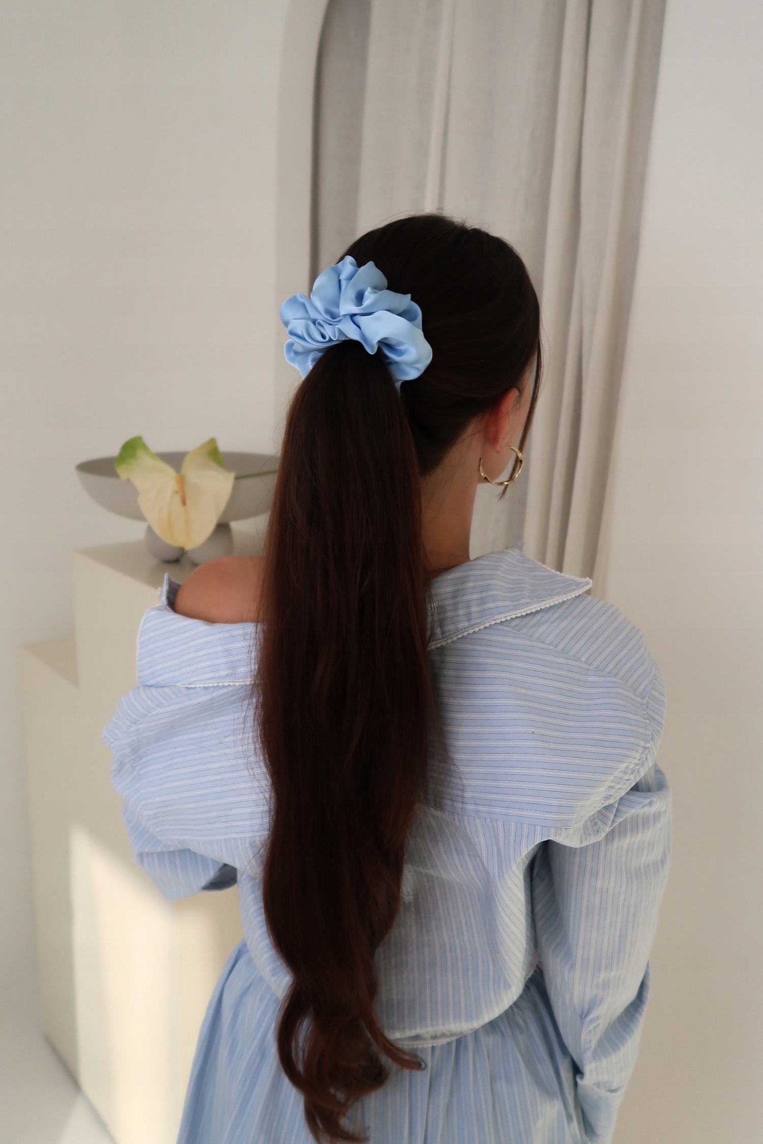 Scrunchi Medium Baby Blue – атласная резинка для волос с шелком
