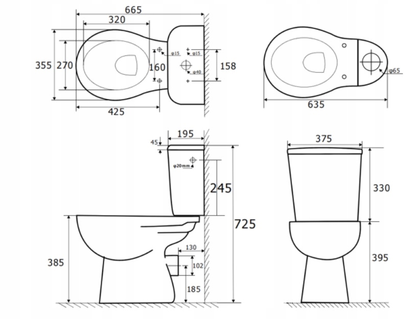- Высота дренажного клапана: 24 см