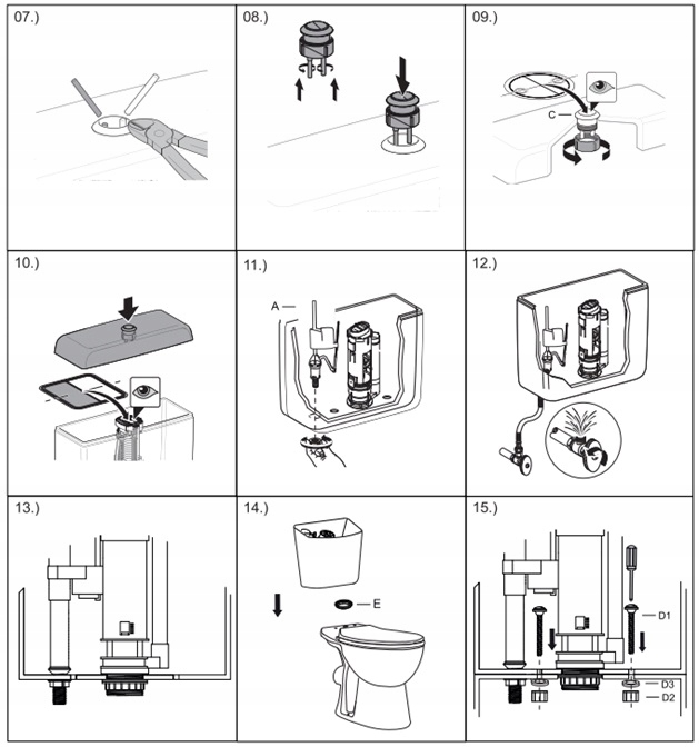 - тип установки: дренажный клапан + нижний (тихий) заполнительный клапан