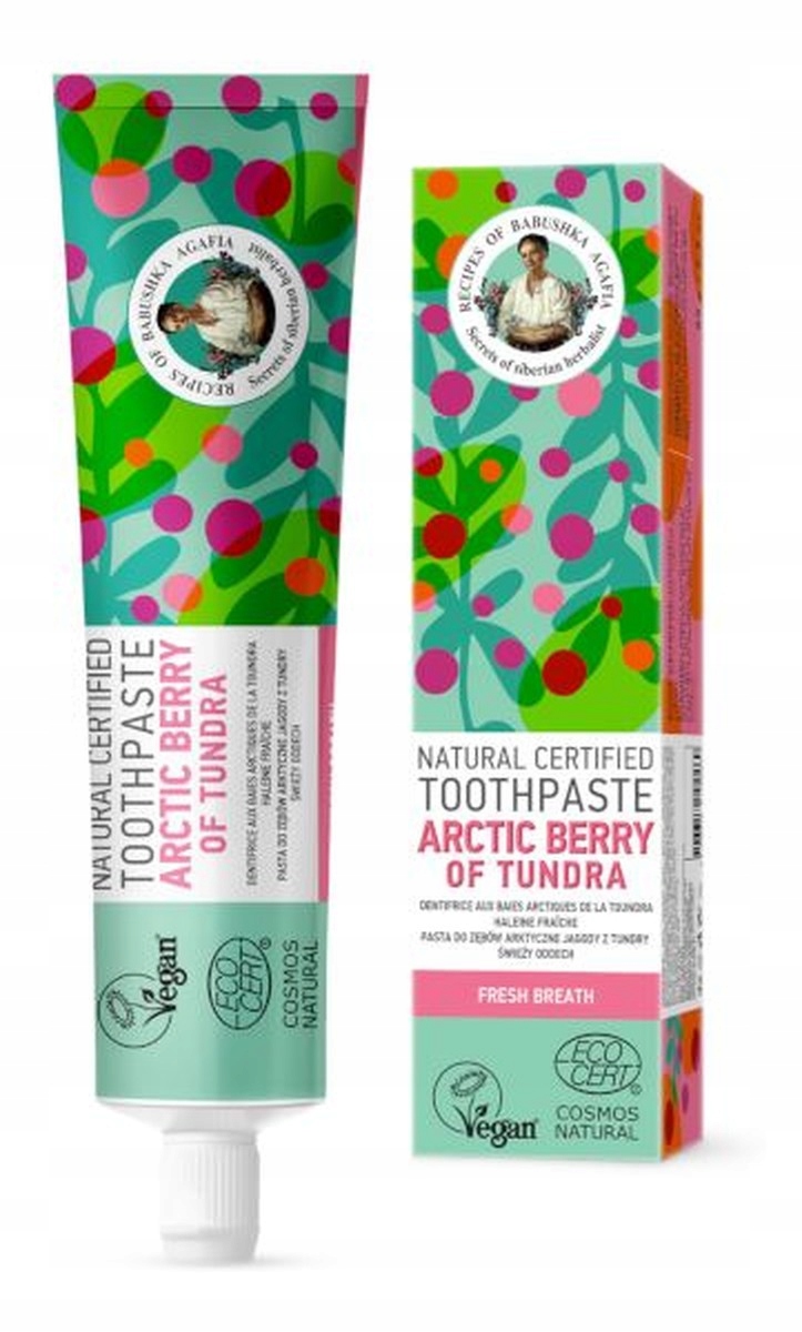 Рецепты Бабушки Агафии Натуральная сертифицированная зубная паста Арктическая Тундра Ягоды Свежее дыхание Без фтора 85 г