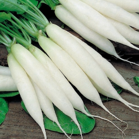 Редис сосулька – сорт, по форме напоминающий упомянутую сосульку. Он белого цвета и имеет заостренный конец. Выращивают в саду и в поле для сбора урожая поздней осенью. Характеризуется стекловидной мякотью и довольно пряным вкусом. Редис «Сосулька» пользуется большой популярностью, главным образом, благодаря своей необычной, очень оригинальной форме и цвету. Может быть элементом многих красочных овощных композиций, красиво смотрится в сочетании с другими сортами редиса, как стандартными красными, так и желтыми.