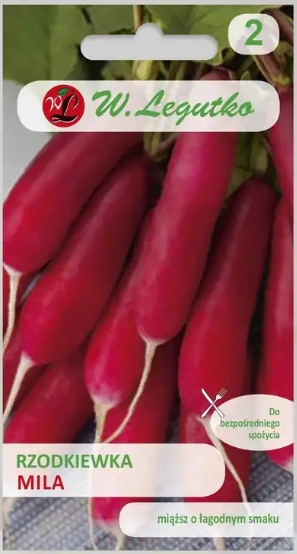 Ранний сорт, рекомендуется для круглогодичного выращивания в закрытом грунте и в грунте. Редька Мила — сорт, известный своей короткой фазой созревания, интенсивным цветом и характерным, слегка пряным вкусом.