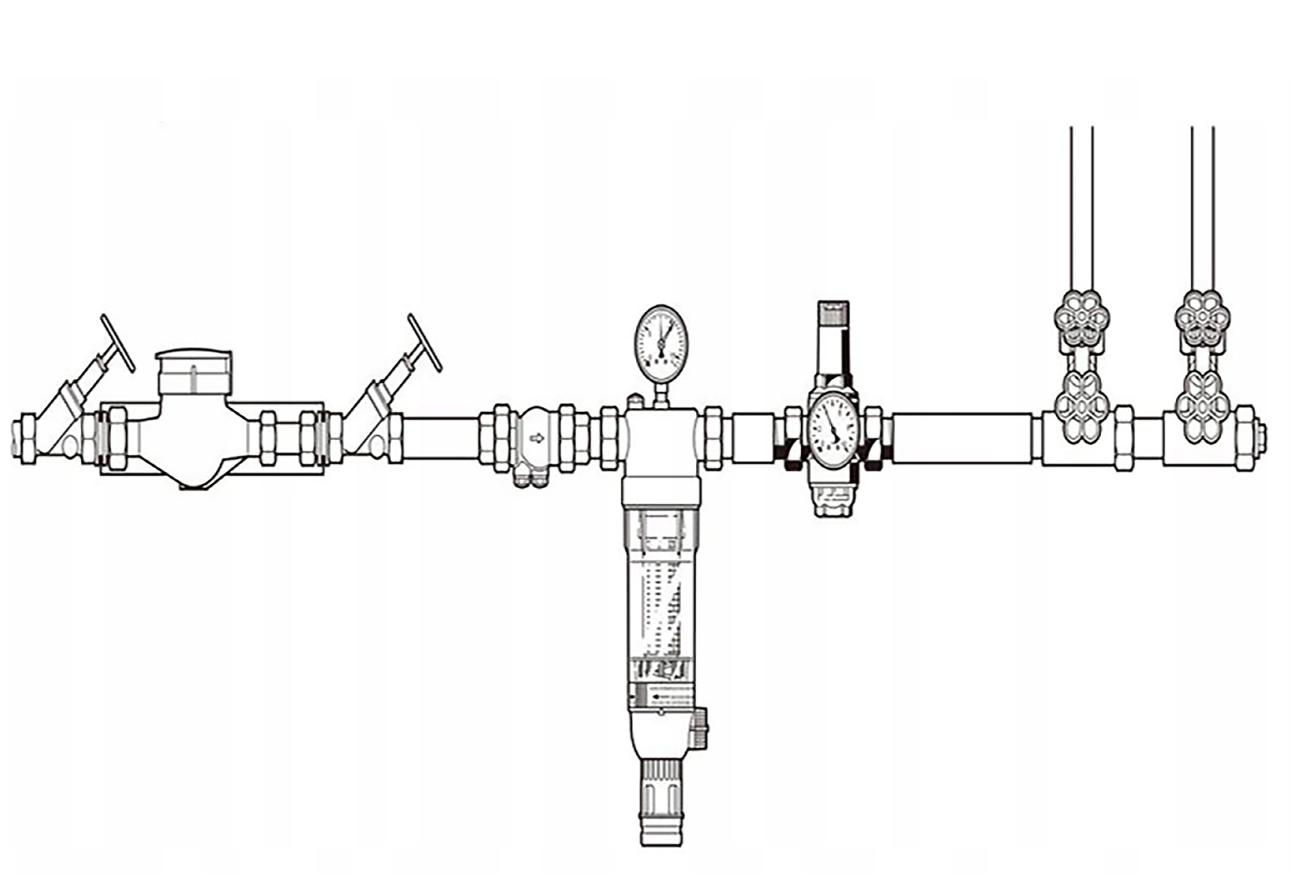 - Поворот ручки за пределы диапазона настроек на редукторе может привести к повреждению. Мы рекомендуем Макс. Выходное давление 4 бар для установки однопроизводительных домов (длительный срок службы, более низкие затраты).