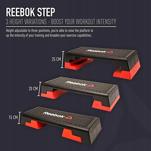Последняя эволюция Reebok Step оснащена тремя быстро меняющимися регулировками высоты (15/20/25 см), позволяющими адаптировать интенсивность аэробной тренировки к своему личному уровню физической подготовки. Просто нажмите и зафиксируйте ножки на желаемой высоте, и все готово! Нескользящие резиновые ножки обеспечат прочную и устойчивую платформу для фитнеса.