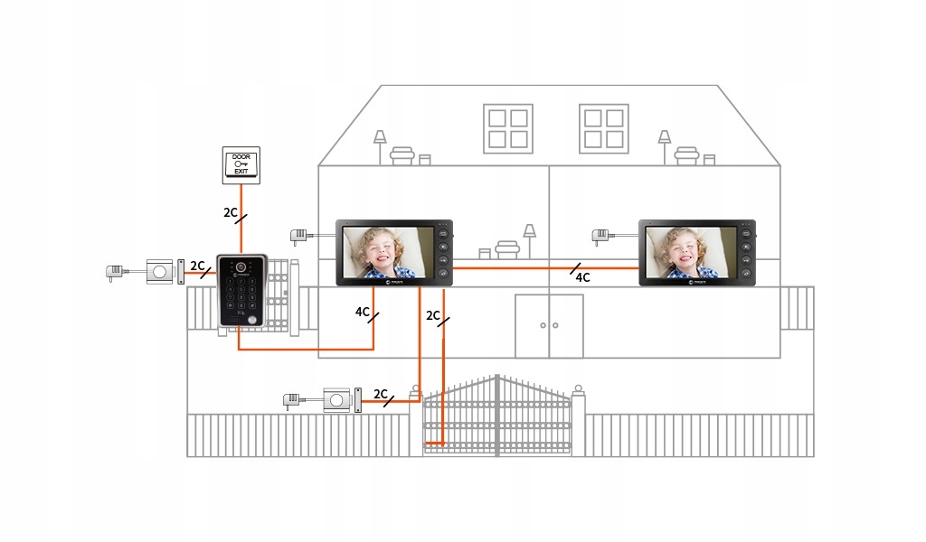 Комплект можно расширить максимум до 2 ЖК-панелей и 2 внешних камер с дверным звонком (отдельные порты).