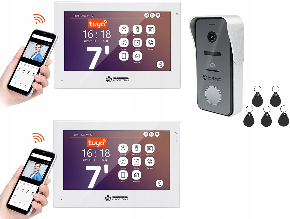 ВИДЕОИНТЕРФОН REER IP927 WiFi 1080p APP 7' TUYA 2-WIRE, ПРИЛОЖЕНИЕ TUYA НА ТЕЛЕФОНЕ, КАМЕРА С БЕСКОНТАКТНЫМ СЧИТЫВАТЕЛЕМ БИЛЕТОВ ДЛЯ ОТКРЫТИЯ ВОРОТ
