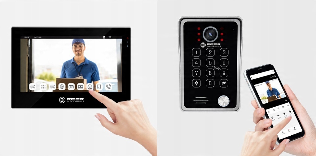 ВИДЕОДОМОН REER IP928 WiFi 1080p ПРИЛОЖЕНИЕ 7' TUYA 2-WIRE, ПРИЛОЖЕНИЕ TUYA НА ТЕЛЕФОНЕ, КАМЕРА С КОДОМ И БЕСКОНТАКТНОЙ ПАНЕЛЬ