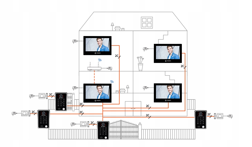 комплект можно расширить максимум до 6 ЖК-панелей и 4 внешних камер со звонком.