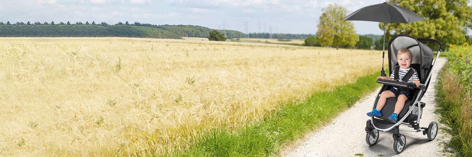 Высококачественный универсальный солнцезащитный козырек с фильтром UV 50+, блокирует 98% УФ-излучения. Зонт оснащен двумя регулируемыми шарнирами, благодаря которым его можно закрепить не только на коляске или манеже, но его использование практически не ограничено.