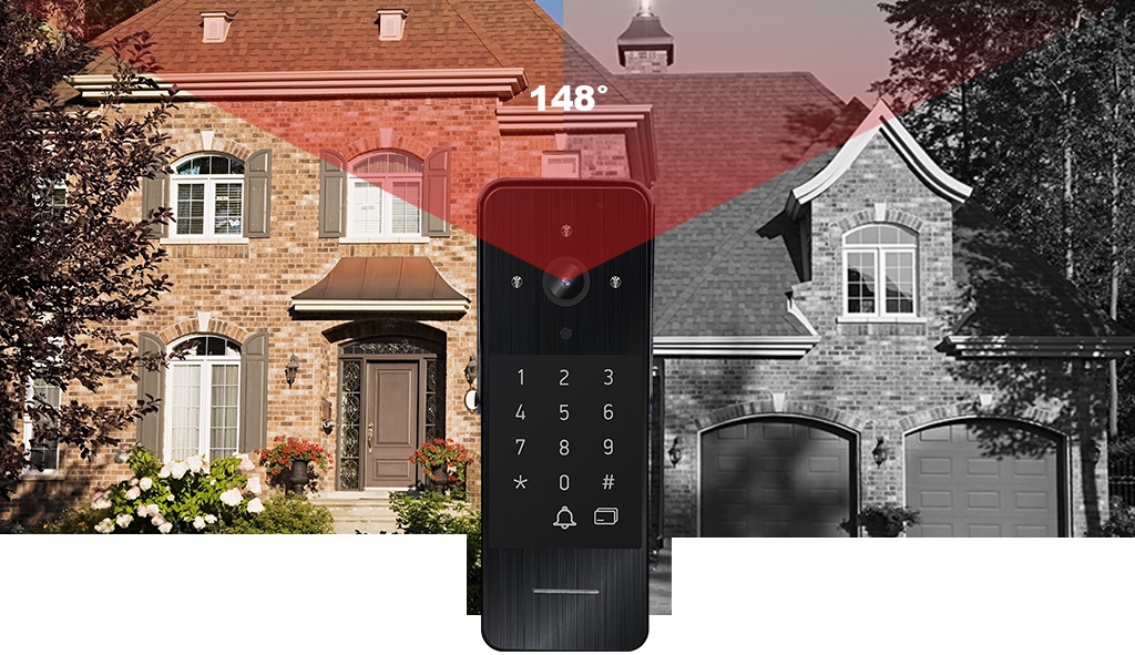 Камера оснащена кодировщиком с белой подсветкой. Широкий угол обзора камеры 148 градусов.