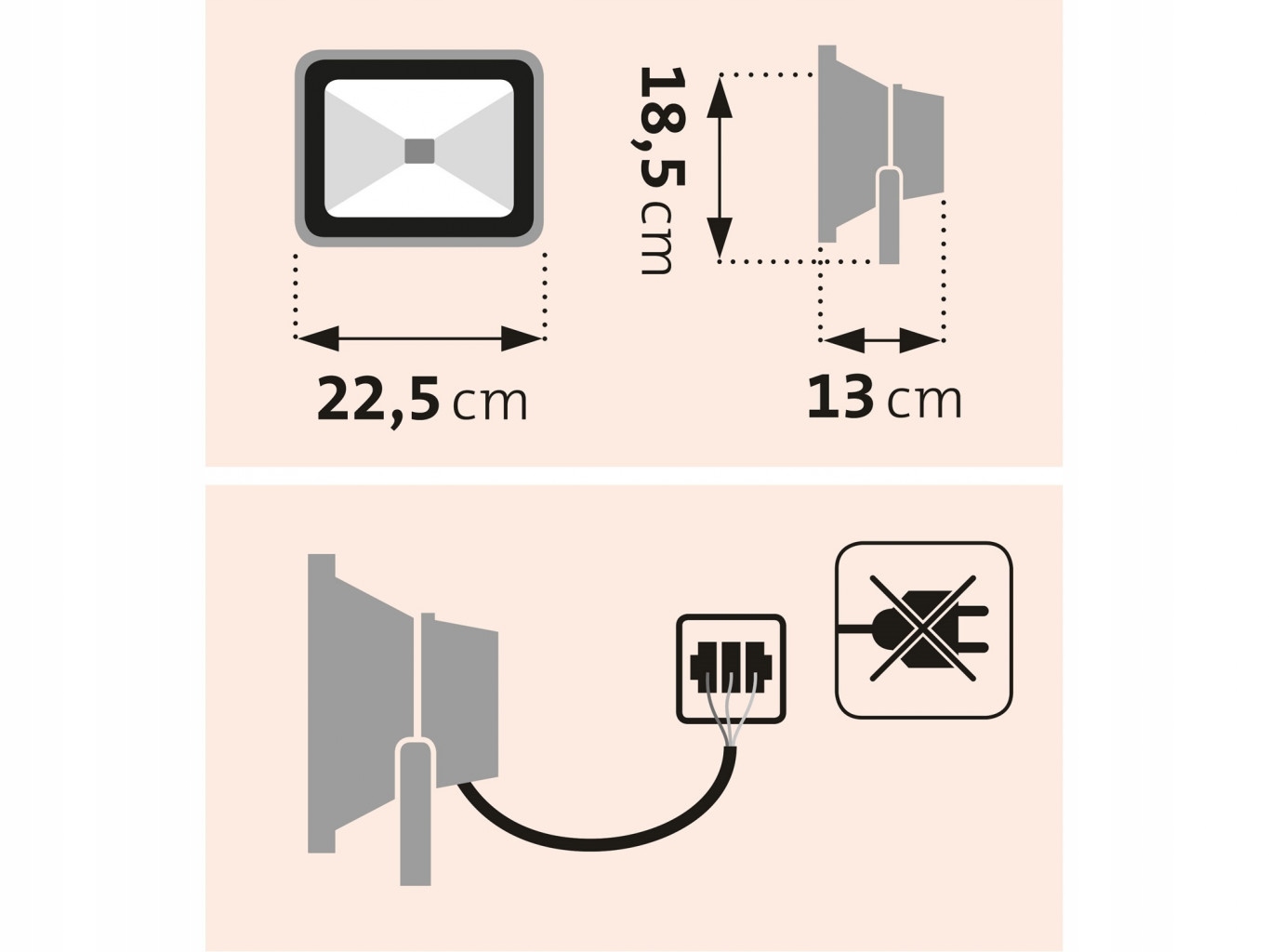 - Прожектор предназначен для стационарного монтажа и проводки