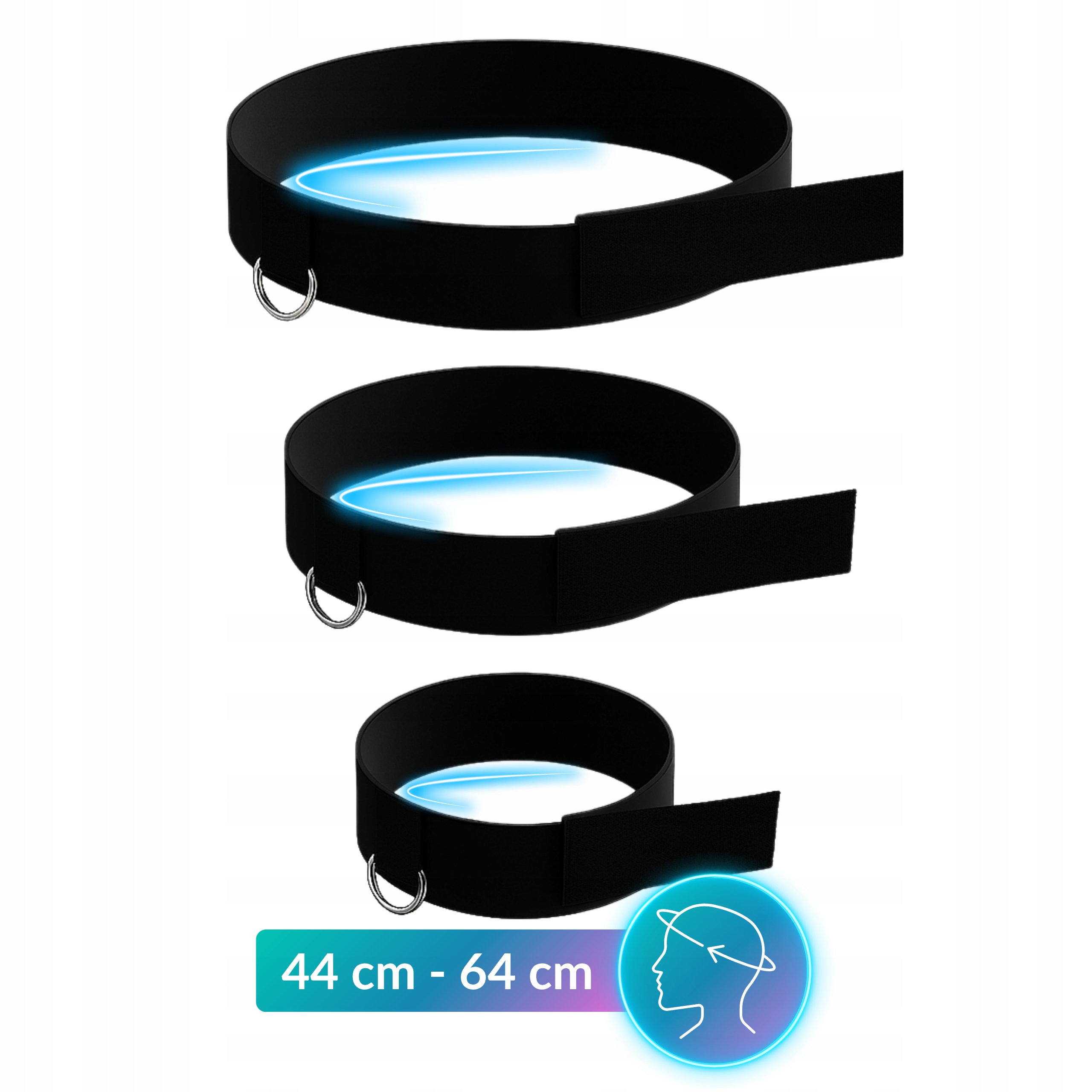 ✅ Регулируемая повязка на голову - комфорт и стабильность. мягкий и приятный на ощупь, широкая полоса (44–64 см окружности), прикрепленная к липучке, идеально адаптируется к каждой головке. Сплошное фиксация D-кольца гарантирует безопасность во время интенсивных сеансов.