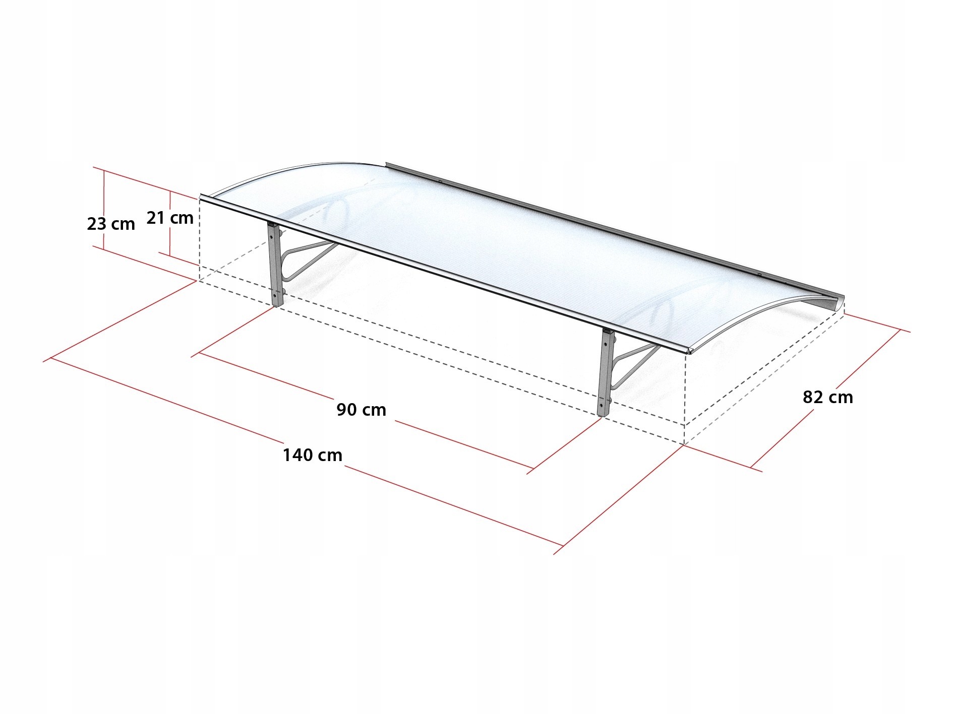 Предложение включает крышу в двух цветовых вариантах: белом и антраците. Установка осуществляется быстро и легко, полный комплект для установки включен в цену. Навес доступен в размерах 140 см х 82 см х 23 см и имеет тентовую форму.