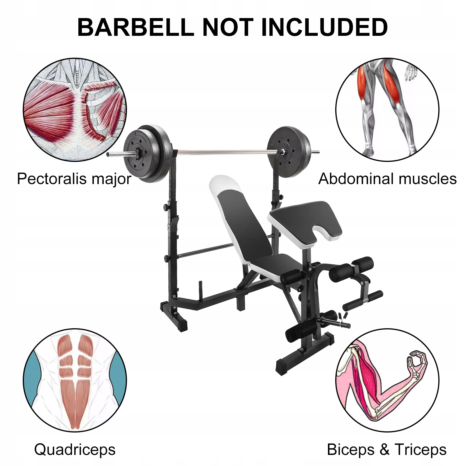 Вы можете сделать сжимание на скамейке, приседаниях, пропадке, проповеднике Loki и подъемниках над головой для мышц, используя много типов тренажерный оборудование, поставляемое этой регулируемой скамейкой для подъема веса.