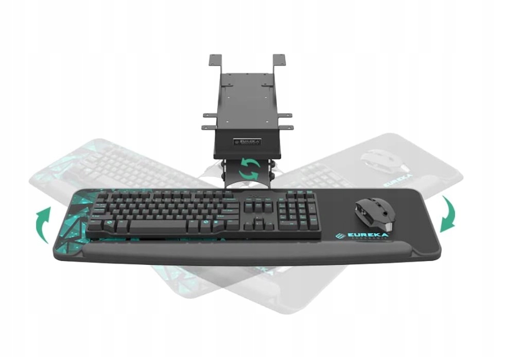 - Экономьте место на столе: универсальный лоток размером 66 x 24 см подходит для большинства клавиатур и мышей. Аккуратно положите лоток для клавиатуры и мыши под стол и выдвиньте его, когда вам нужно поработать.