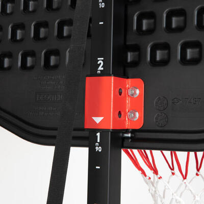 Вам не обязательно, чтобы рядом находился взрослый, чтобы поднять или опустить высоту щита и обруча. Больше никаких инструментов и ручек, которыми слишком сложно овладеть. Благодаря системе ремней каждый ребенок может одним простым движением регулировать свой игровой рост от 1,60 м до 2,20 м.