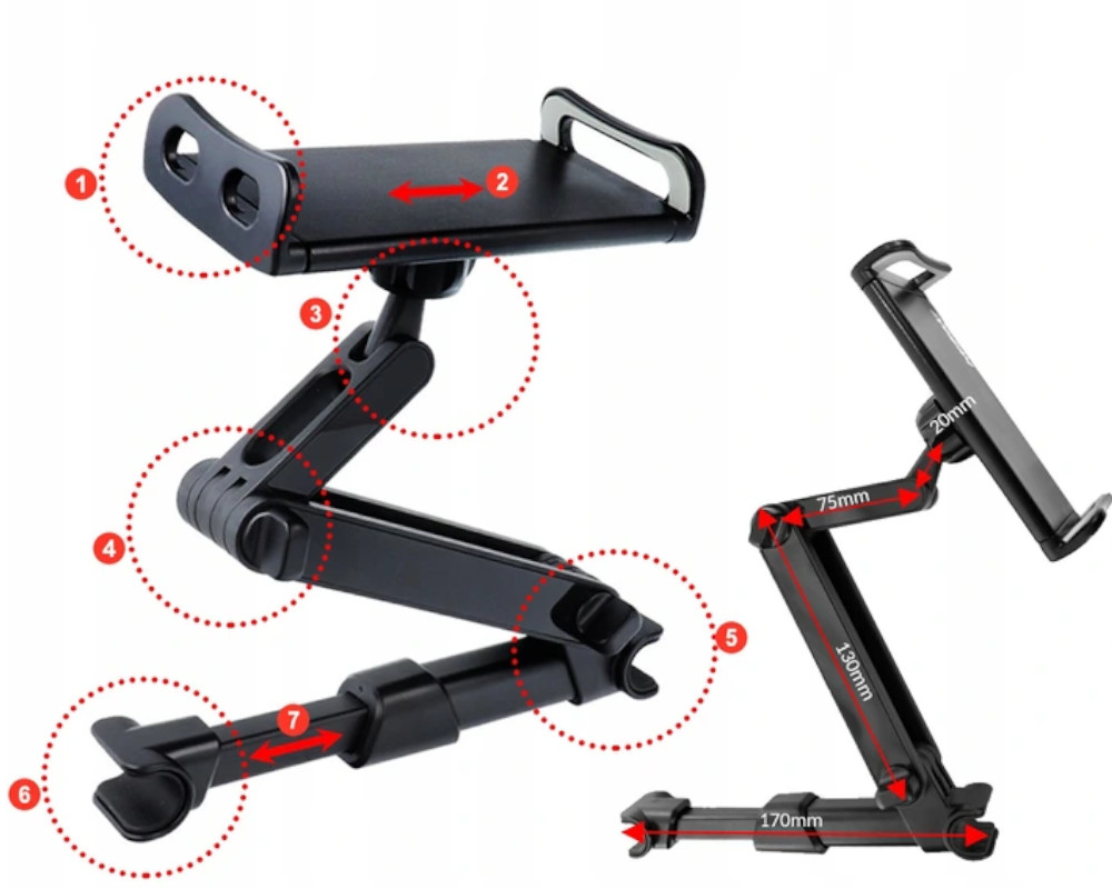 Держатель для телефона/планшета в подголовнике автомобиля – это фантастическое решение, позволяющее развлекать пассажиров во время длительных автомобильных поездок. Оно понравится и детям, и взрослым. Ручка имеет эргономичную конструкцию, чтобы ваши руки, голова или шея не уставали от неудобного положения удержания устройства.