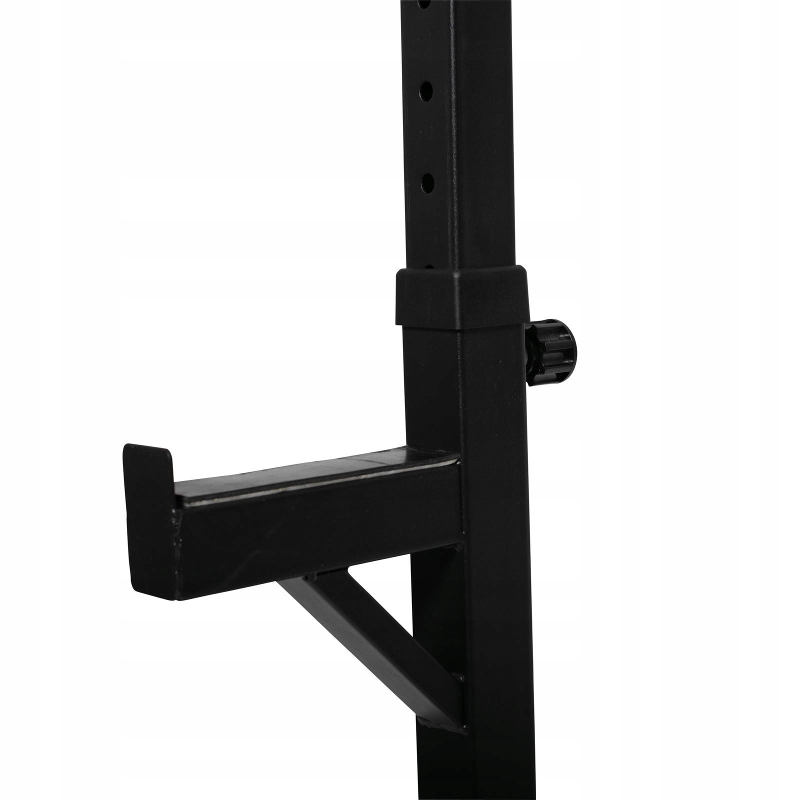Стойка предлагает широкий диапазон вертикальных и горизонтальных регулировок, что позволяет точно расположить ручки и предохранительные рычаги. Плавное изменение высоты и расстояния между рамами обеспечивает комфорт и безопасность, позволяя свободно переключаться между упражнениями и подстраивать положение штанги под пользователя.