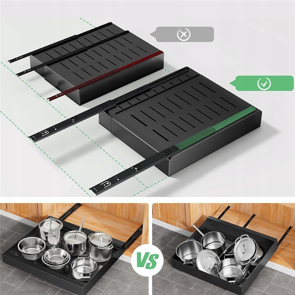 Выдвижной органайзер для шкафов, изготовленных из прочного металла с чрезвычайно жидкой скользящей системой, которая будет разместить большое количество горшков и сковороды, благодарственных ящиков, а не по сторонам, максимизируют каждый гонтиметр в кабинете в кабинете, в то время как при этом ELEGANENS, в то время как в форме.