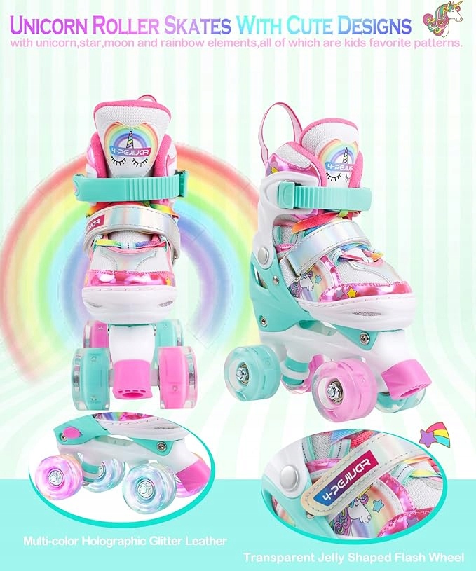 Красочные роликовые коньки с единорогом для детей 3-12 лет
