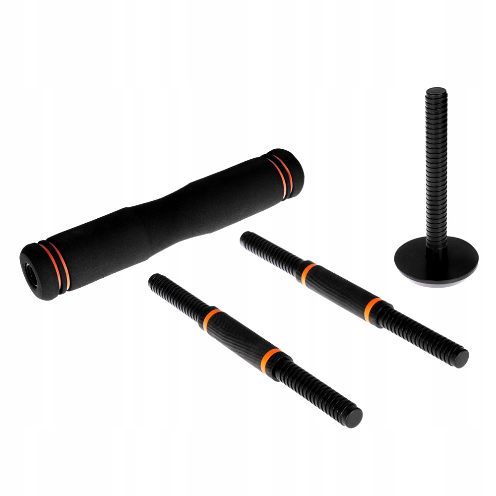 Штанга также является универсальным снарядом по количеству возможных упражнений и задействованию групп мышц. Благодаря своей конструкции штанга более устойчива, чем гантели, поэтому мы можем использовать больший вес. Это также будет хорошим решением в начале ваших силовых тренировок, когда осознание мышц слабее, чем на более поздних стадиях. Штанга в этом наборе создана путем специального соединения двух коротких стержней. Втулка для штанги ввинчивается в соединение. Средний элемент оснащен эргономичной губкой, предотвращающей дискомфорт при выполнении, например, приседаний со штангой.