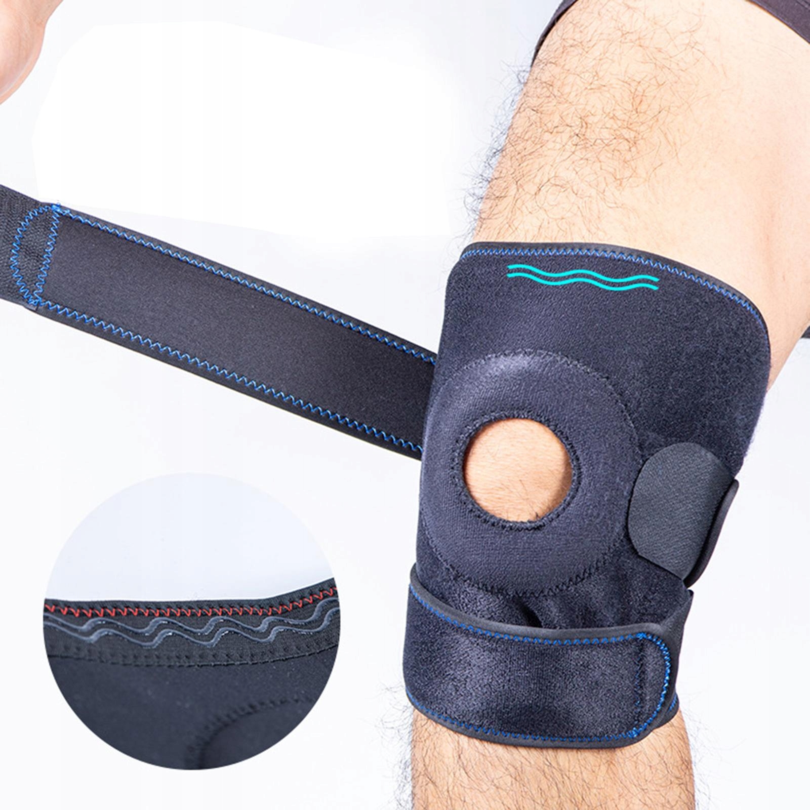 : Центр надколенника оказывает физическое воздействие, идеально прилегает к коленному суставу с помощью 3 усиленных прижимных ремней, не легко скользит, герметичность можно обеспечить как