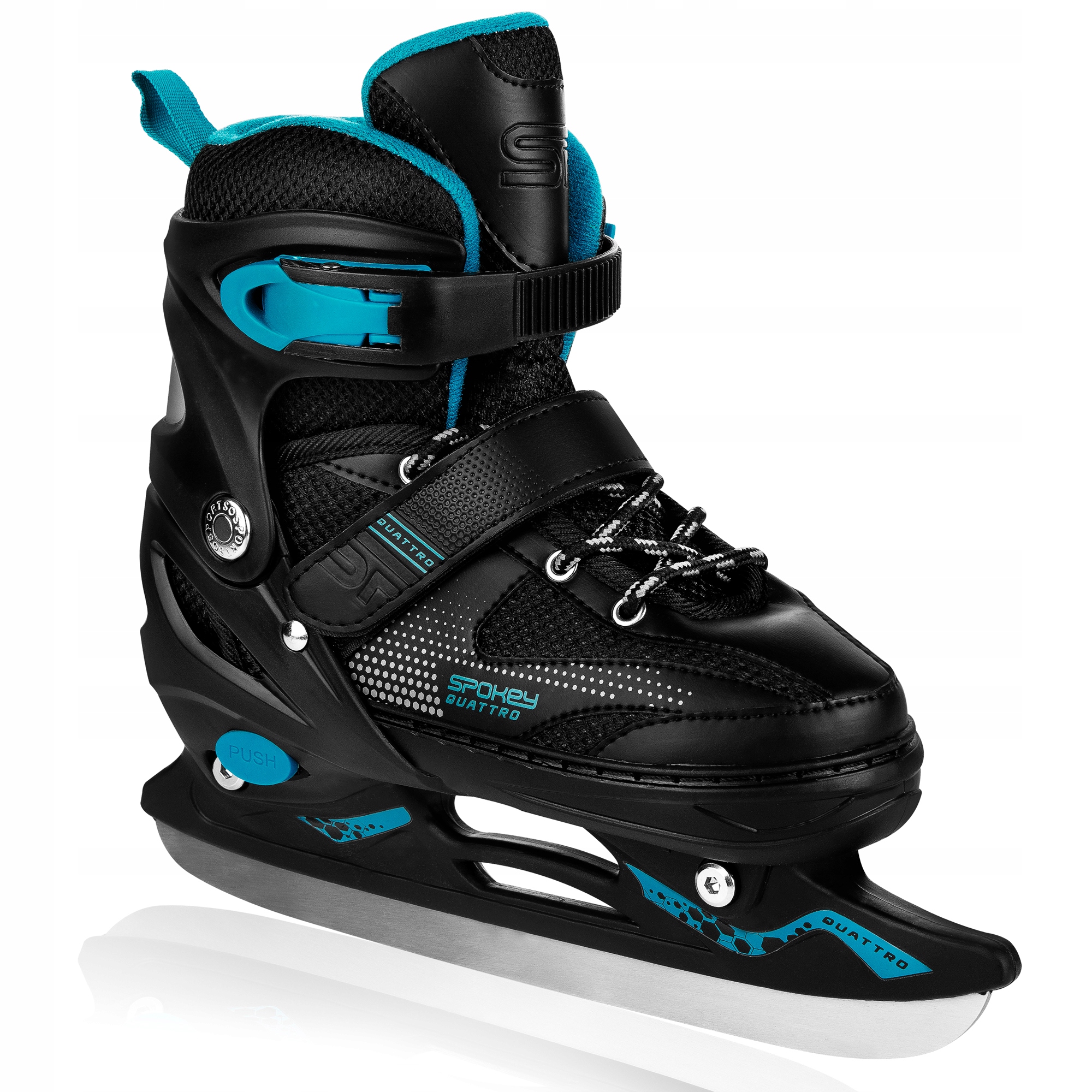 Spokey QUATTRO — современное решение — с ними ваш ребенок сможет активно проводить время как летом, так и зимой. на ледовом катке. У них есть две сменные полозья: коньки и ролики, которые можно настроить тремя разными способами! Таким образом, QUATTRO может быть коньками (с хоккейным лезвием из стали), роликами (4 колеса в ряд), роликами (колеса на по бокам конька) и роликовые коньки (2 колеса в ряд спереди, задние колеса расположены по бокам полозьев). Это идеальный выбор для детей, которые любят кататься на катке и весной или летом получают огромное удовольствие от активного времяпрепровождения на свежем воздухе.