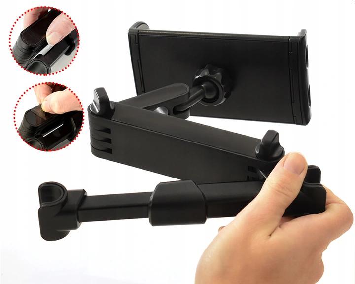 Держатель подходит для планшетов с диагональю от 7 до 11 дюймов, а также для маленьких и больших телефонов.