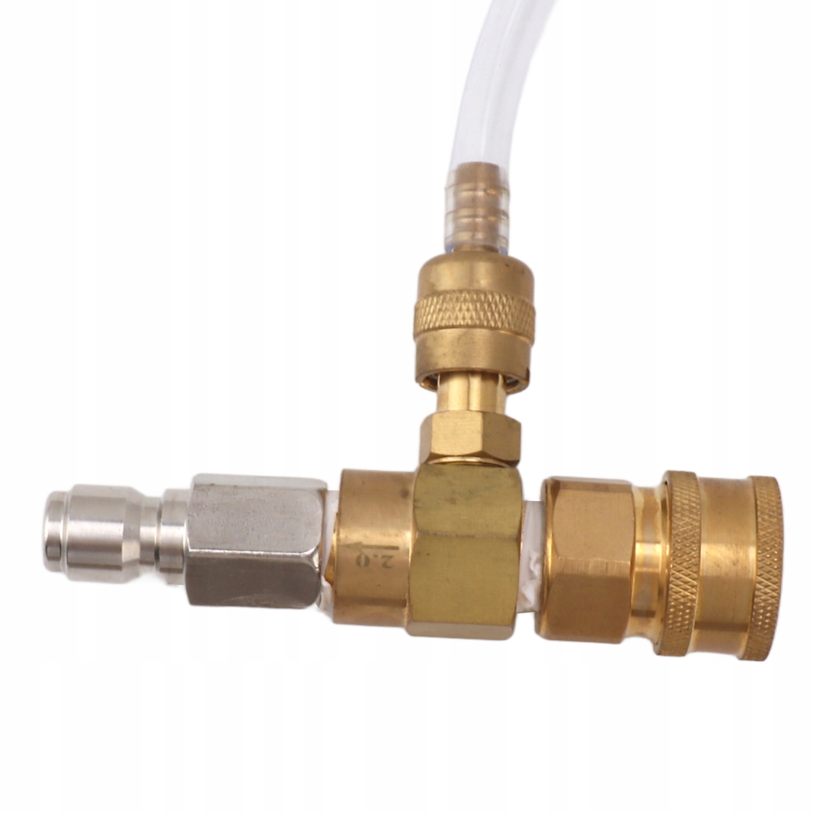 4. 3/8 дюймов быстрое соединение: химические форсунки, установленные стандартным разъемом быстрого разъема/3/8 дюймов. Подходит между насосом стиральной машины для давления на выходе 3/8 дюйма для 3/8 -дюймовой стиральной машины высокой мощности.