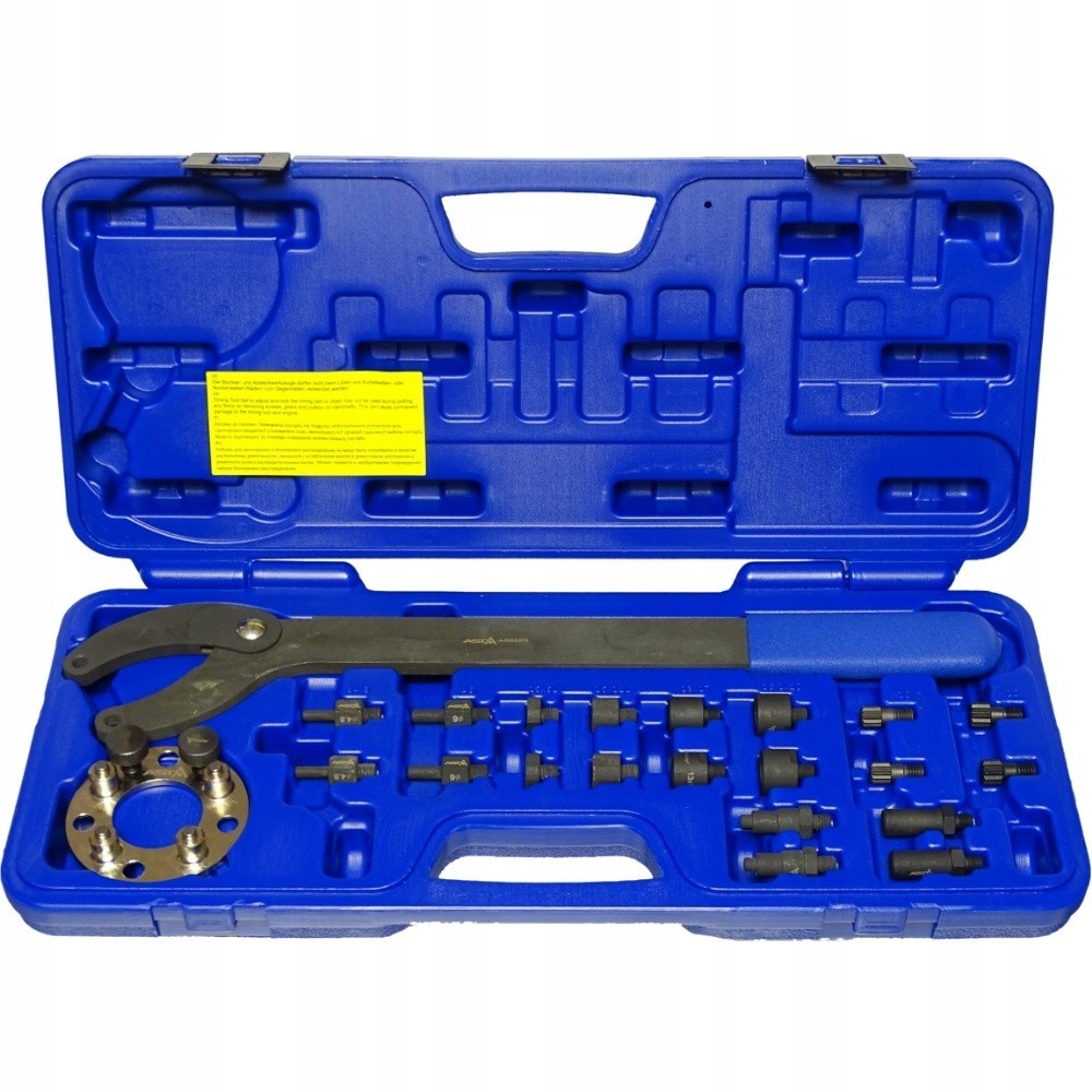 Специализированные инструменты позволяют устанавливать время в верхнем положении, DE/установка распределительного вала, замена ремня ГРМ, масляный насос, вибрационный глушинг, проверка регулировки ролика и блокировка коленчатого вала.