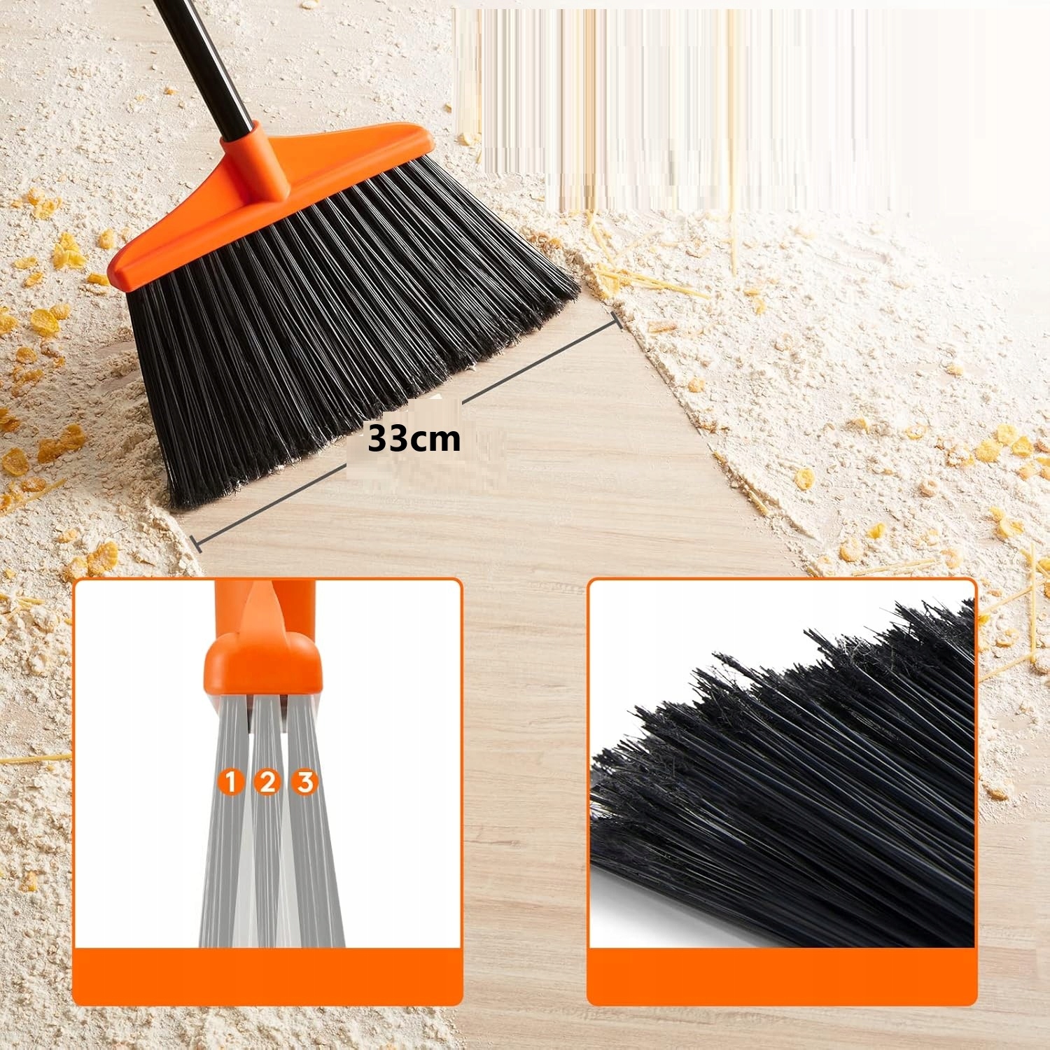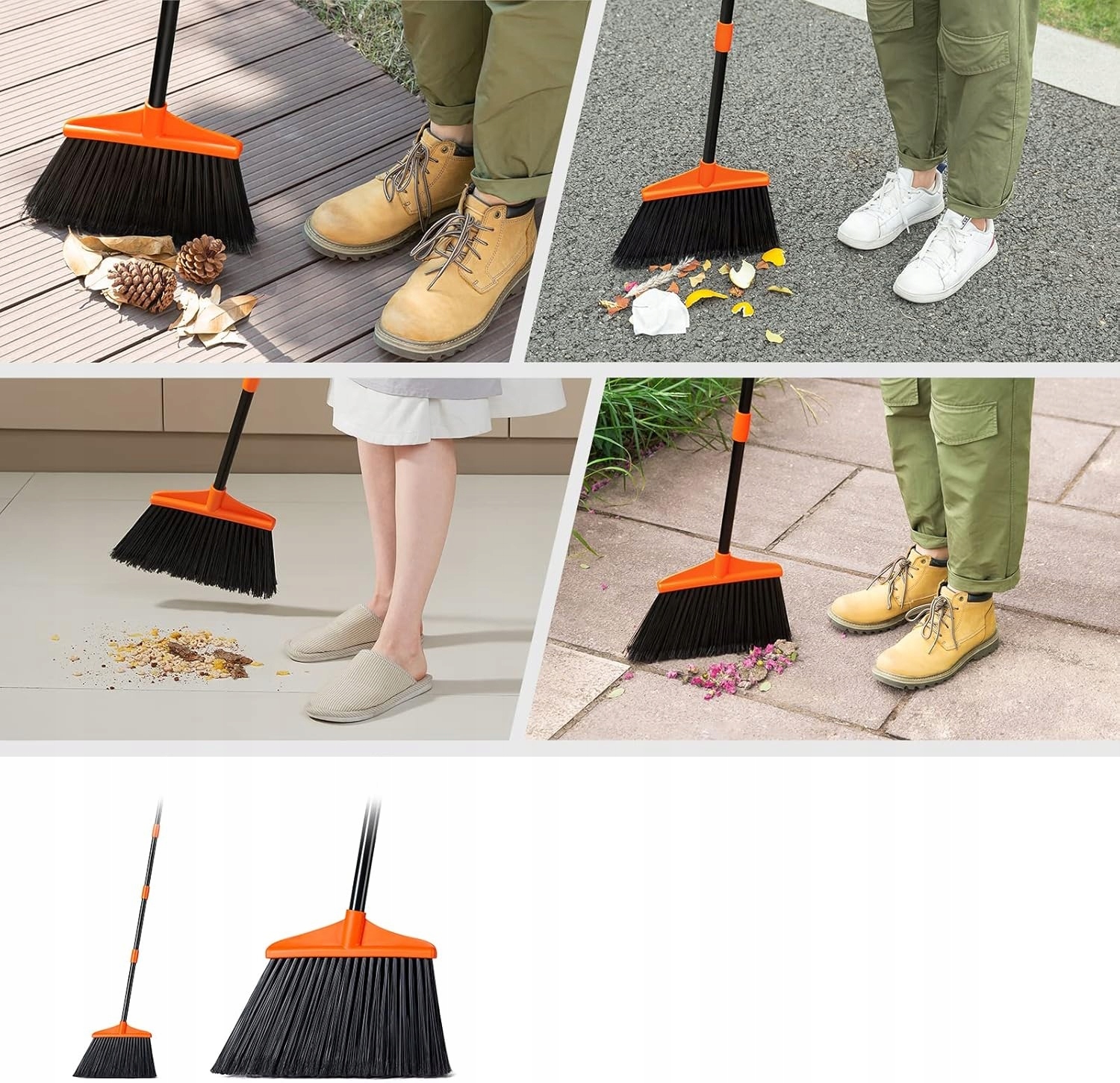 Облегчить очистку благодаря Регулируемой жесткой метле с длинной ручкой ! Специально спроектированная угловая головка позволяет вам трудно добраться до мест, а прочные щетинки эффективно удаляют грязь как с внутренних, так и с внешних этажей.