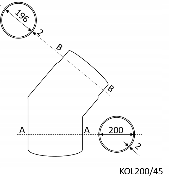 РЕГУЛИРУЕМОЕ КОЛЕНО ДЛЯ КОТЛА КАМИНА, СТАЛЬНАЯ СИСТЕМА STAHL 45st FI200, РЕГУЛИРУЕМОЕ