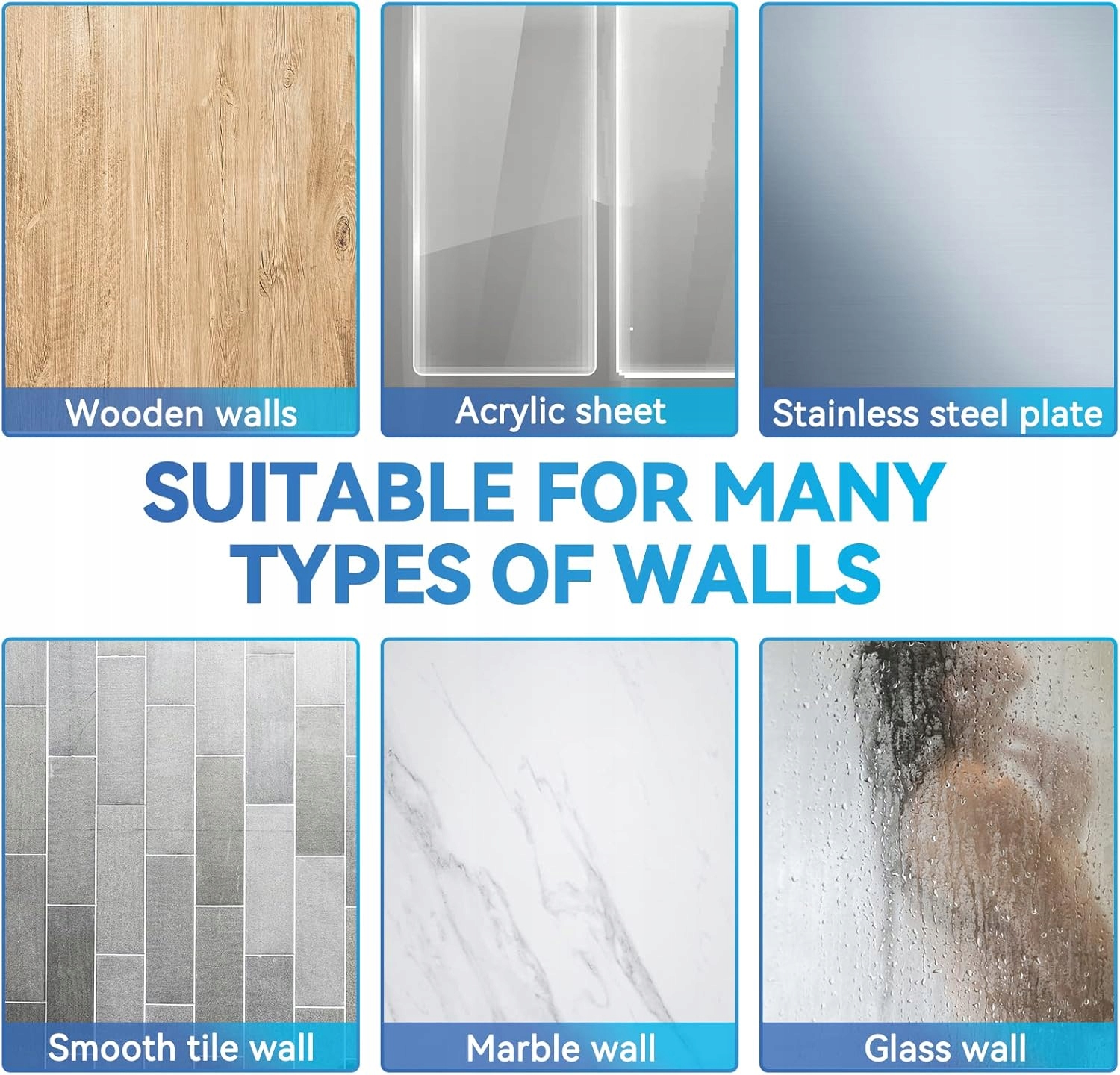 Благодаря большому самоклеящемуся основанию размером 6,8 х 6,8 см держатель прочно держится на стене и выдерживает нагрузку до 5 кг. Установка быстрая и простая — просто снимите защитную пленку и приклейте держатель к гладкой поверхности, например стеклу, керамике, металлу или плитке. Не требуется сверление или инструменты, что делает его идеальным выбором для сдачи в аренду квартир или быстрого ремонта.