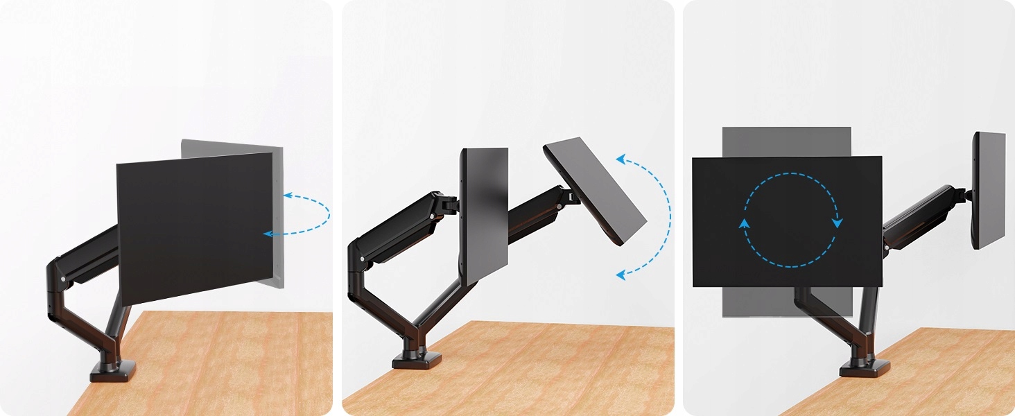 Представленное настольное крепление монитора можно легко установить с помощью С-образного зажима, не требующего сверления (толщина стола от 1 до 11,5 см) или основания с прокладкой (толщина стола от 1 см). –8 см, диаметр отверстия в пределах 1 см – 6 см). В комплект входит понятная инструкция и необходимые элементы для сборки. Менее 15 минут с момента открытия упаковки до использования.