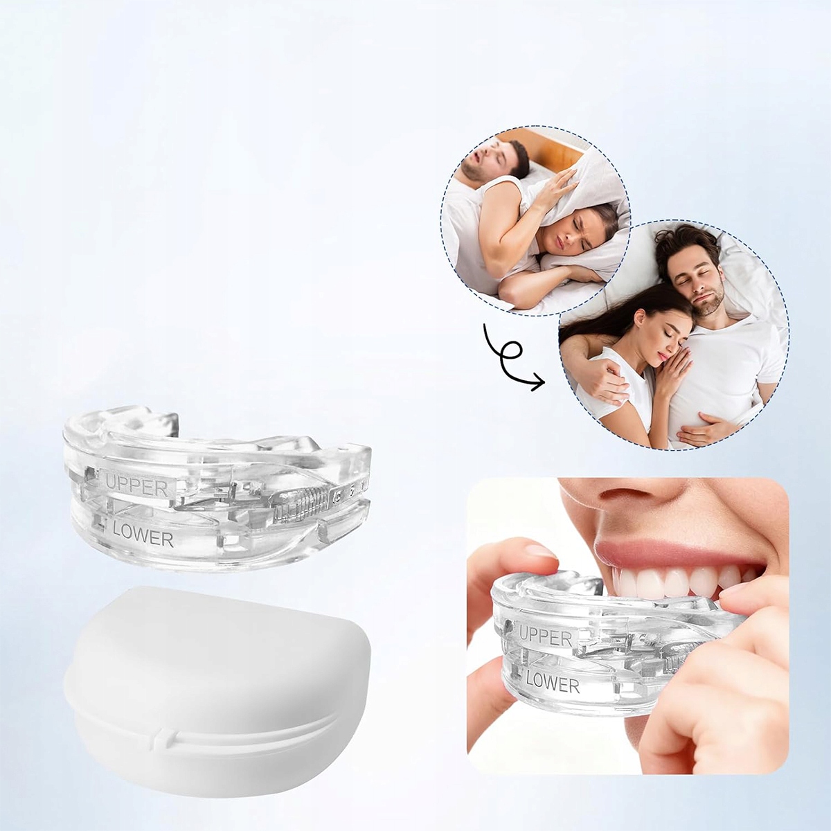 Это приспособление для полости рта обеспечивает двойную функциональность: уменьшает скрежетание зубами (бруксизм) и предотвращает храп за счет мягкого положения челюсти, чтобы дыхательные пути оставались открытыми, обеспечивая комфортный ночной сон вам и вашему партнеру.