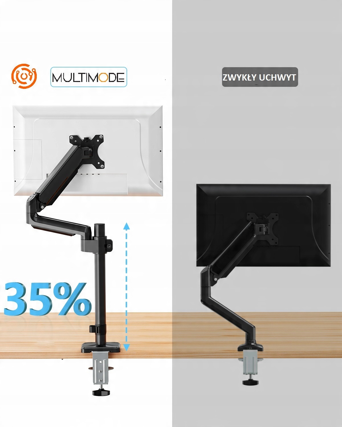 Высококачественное вращающееся настольное крепление для светодиодных ЖК-мониторов с полной 3D-регулировкой и плавной регулировкой высоты на газовой пружине, на 35 % выше, чем у стандартных моделей.