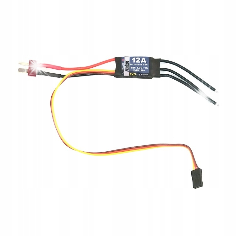 Универсальный контроллер Redox EVO 12A для бесщеточных двигателей, предназначенный для использования в моделях самолетов и вертолетов.