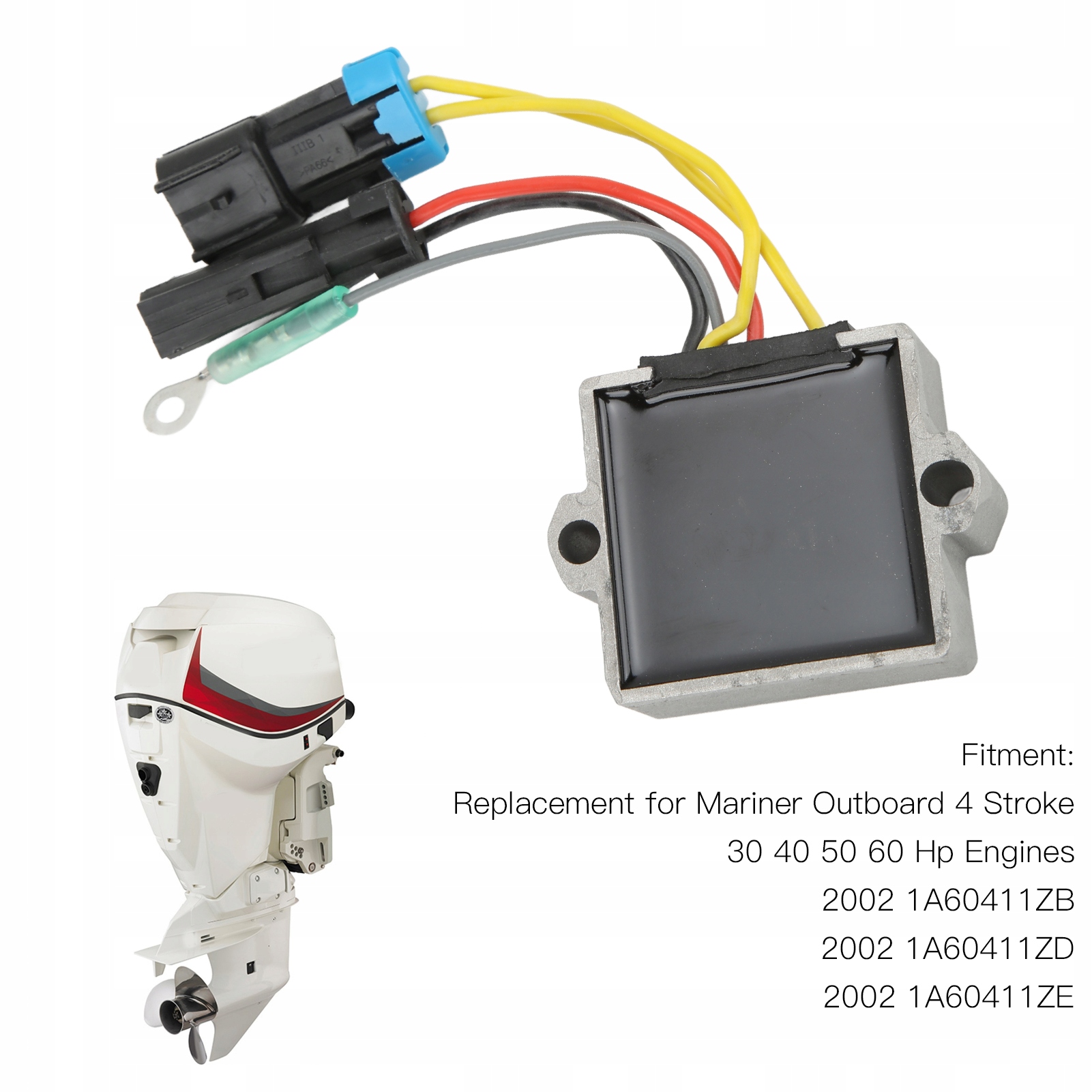Установка: Регулятор напряжения является идеальной заменой для 4-тактных подвесных двигателей Mariner мощностью 30, 40, 50, 60 л.с.