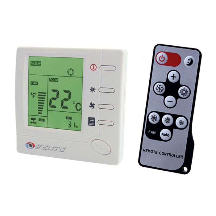 Пластиковый панельный корпус имеет встроенный датчик температуры. На передней панели рабочего стола расположен ЖК-дисплей с подсветкой кнопок управления. На дисплее отображается текущая и заданная температура воздуха в помещении, выбранная система (охлаждение, обогрев) или автоматически установленная скорость вентилятора. Скорость вентилятора можно установить вручную с помощью кнопок управления. Возможно управление тремя скоростями (быстрая, средняя/медленная) автоматически в зависимости от температуры в помещении.